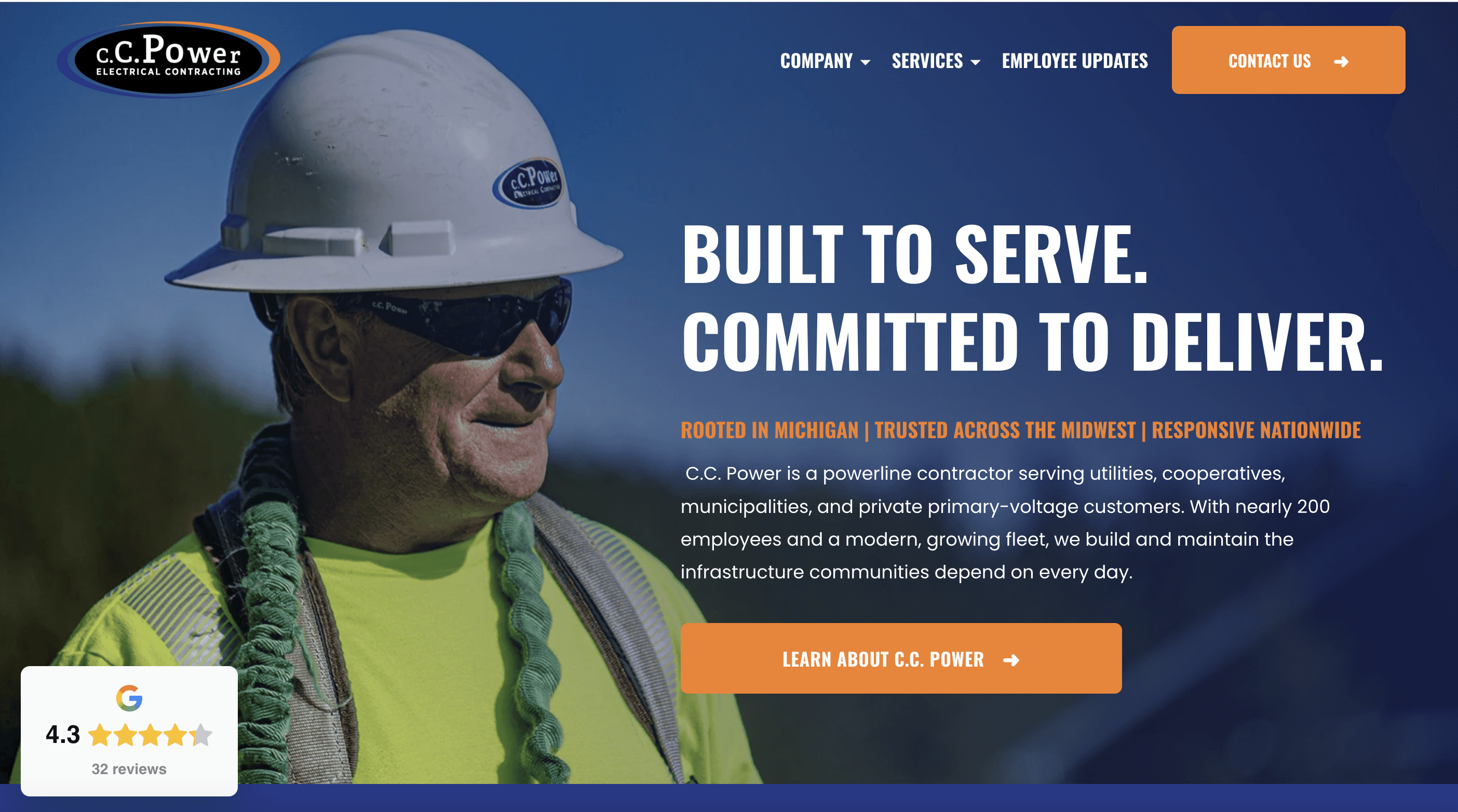 The Challenge The existing site was outdated and lacked the visual credibility needed to position C.C. Power as a trusted partner for utilities, municipalities, and private companies across the country.